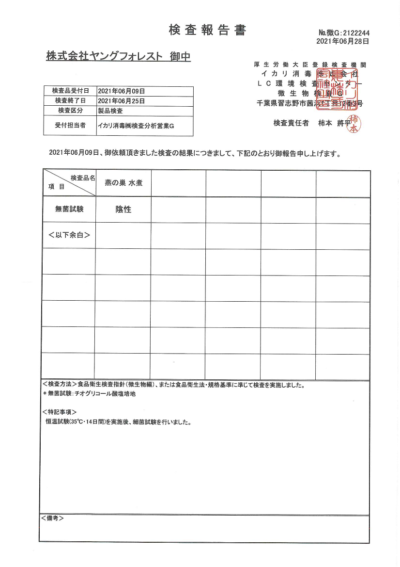 100%天然燕の巣を使用し国内で加工。無添加、無着色、無香料。